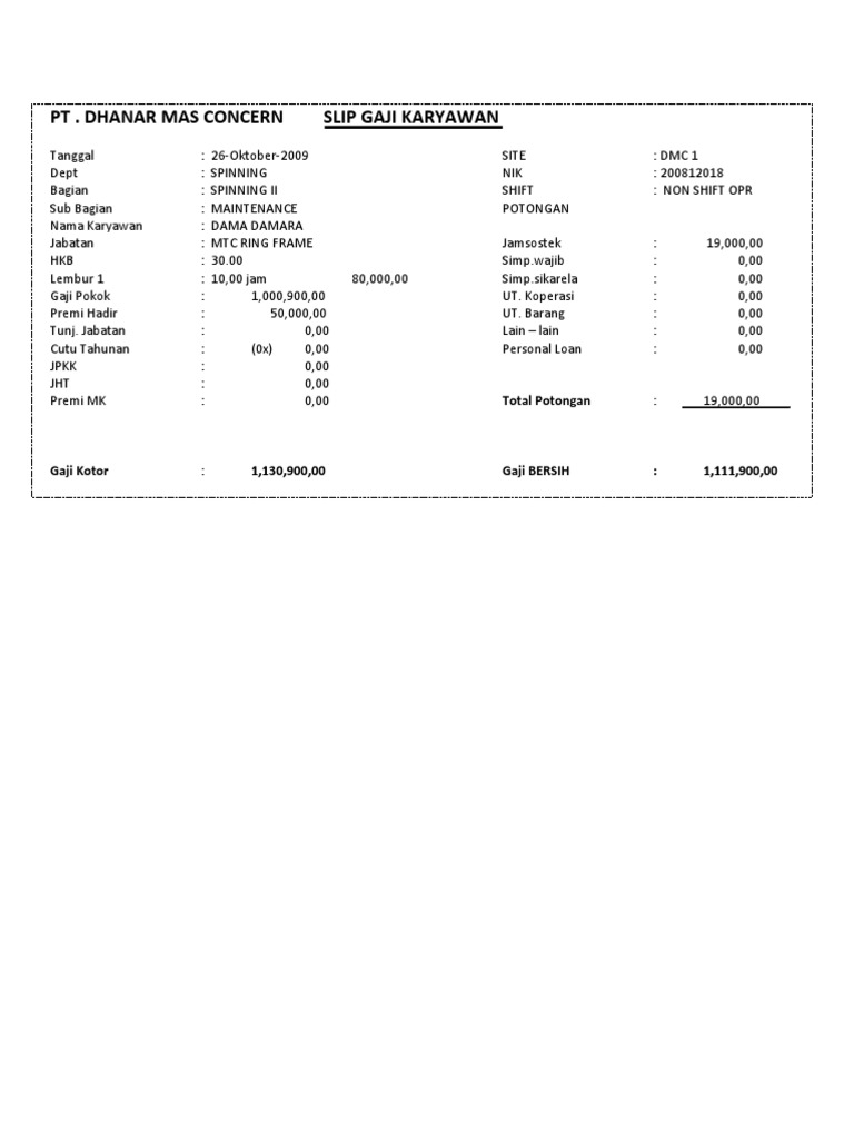 for "Gaji Pt Ssap : Pt Dhanar Mas Concern"